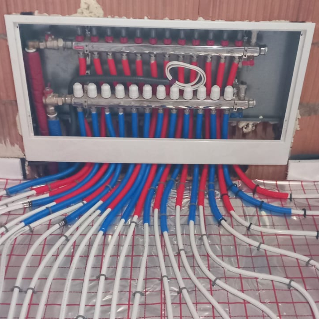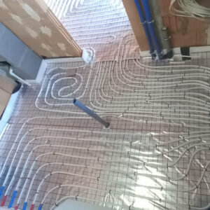 W miejscowości Wieszowa firma Eko-Dom Instalacje jest w trakcie realizacji kompleksowego projektu instalacyjnego w nowym domu jednorodzinnym o powierzchni 100 m². Nasz zespół ekspertów przeprowadza instalację ogrzewania podłogowego, które zapewni równomierne i komfortowe ogrzewanie wszystkich pomieszczeń, co znacząco podniesie komfort użytkowania domu.