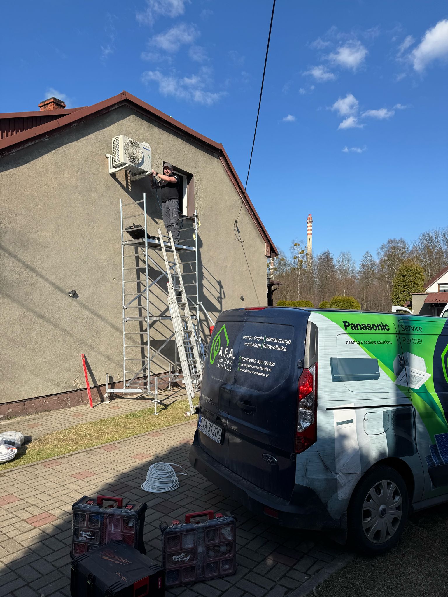 Z przyjemnością dzielimy się kolejną realizacją montażu klimatyzacji, tym razem w Miasteczku Śląskim. Zlecenie wymagało instalacji jednostki zewnętrznej na znacznej wysokości, jednak dzięki naszemu doświadczeniu oraz profesjonalnemu sprzętowi montaż przebiegł sprawnie, bezpiecznie i zgodnie z najwyższymi standardami.